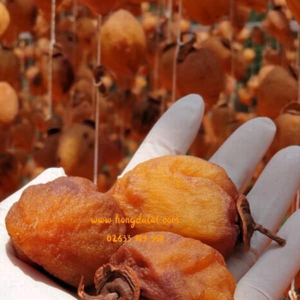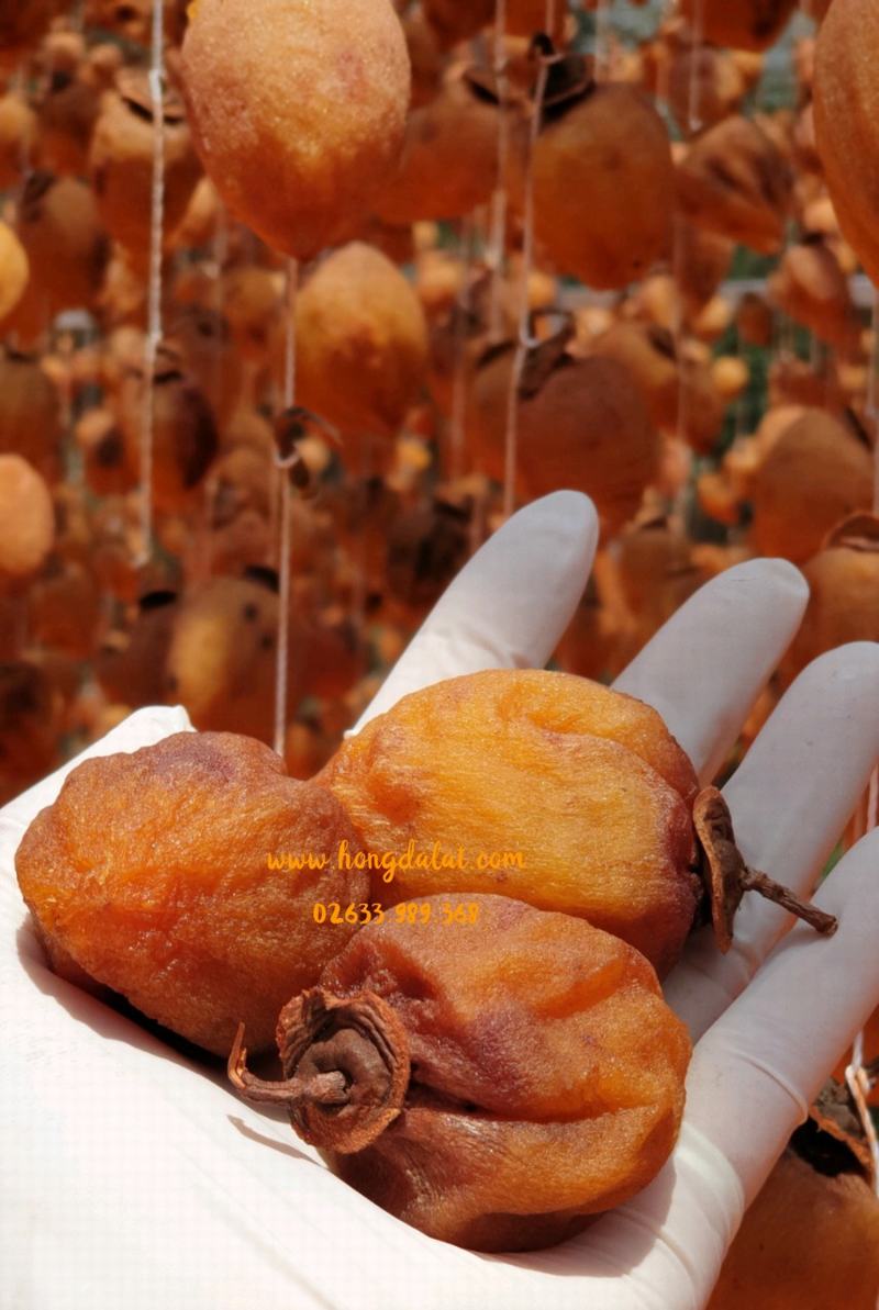 Hồng treo gió bên ngoài khô nhưng bên trong lại đượm mật ngọt, không cần sấy, chỉ với không khí và nắng trời, những trái hồng Đà Lạt tươi ngon tự biến mình thành những trái hồng khô nâu, ngọt đậm đà và an toàn cho sức khỏe người tiêu dùng. Cắn 1 miếng, nhắm mắt lại, cảm nhận vị ngọt vừa thanh vừa đậm lan khắp gai vị giác. Chưa bao giờ sản phẩm từ quả hồng Đà Lạt lại hút khách đến thế.